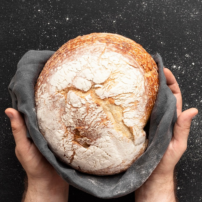 Naturally leavened bread made using the French Country dough with the additions of local Georgia pecans and Thompson raisins